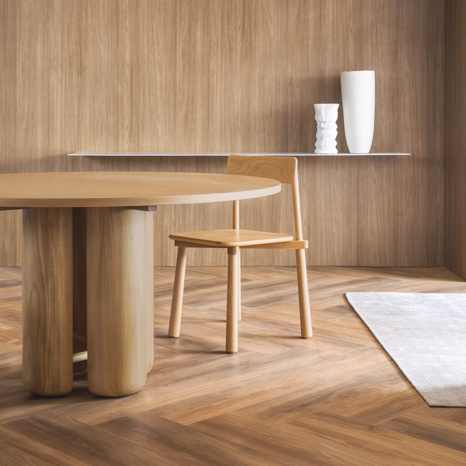 O desenho valoriza a transição entre peso e leveza, criando uma peça equilibrada, confortável e visualmente serena.